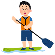 安定感のあるサーフボード型の浮き具に乗り、カヌーのオールのようなもので漕いで進むレジャーです。